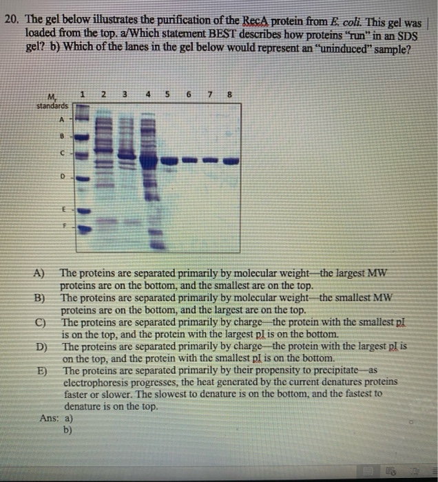 Solved 20 The Gel Below Illustrates The Purification Of The Chegg Com